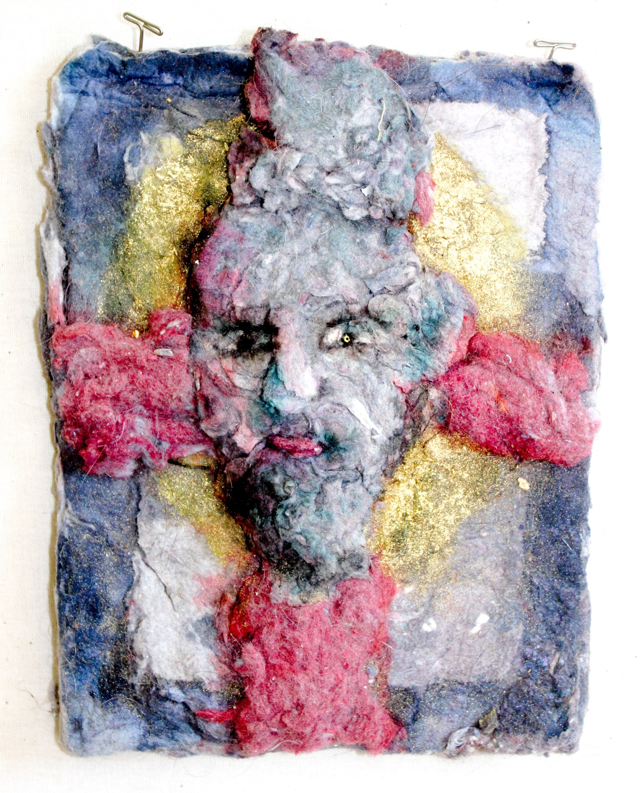 My lint Jesus, yes, it is made of lint collected from the clothes dryer when doing laundry was almost a daily ritual. My body of work made of lint consists of titles such as 50 loads, 50 loads flat, 50 loads square…. you get the idea.